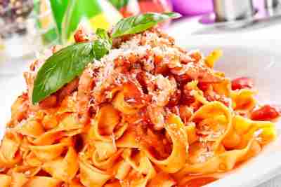 • Verse pasta met naar keuze een Bolognesesaus of een Carbonarasaus. Deze kan ook vegetarisch