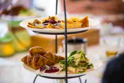 • Diverse huisgemaakte sandwiches, o.a. met zalm/kruidenroomkaas en komkommer/bieslookroomkaas